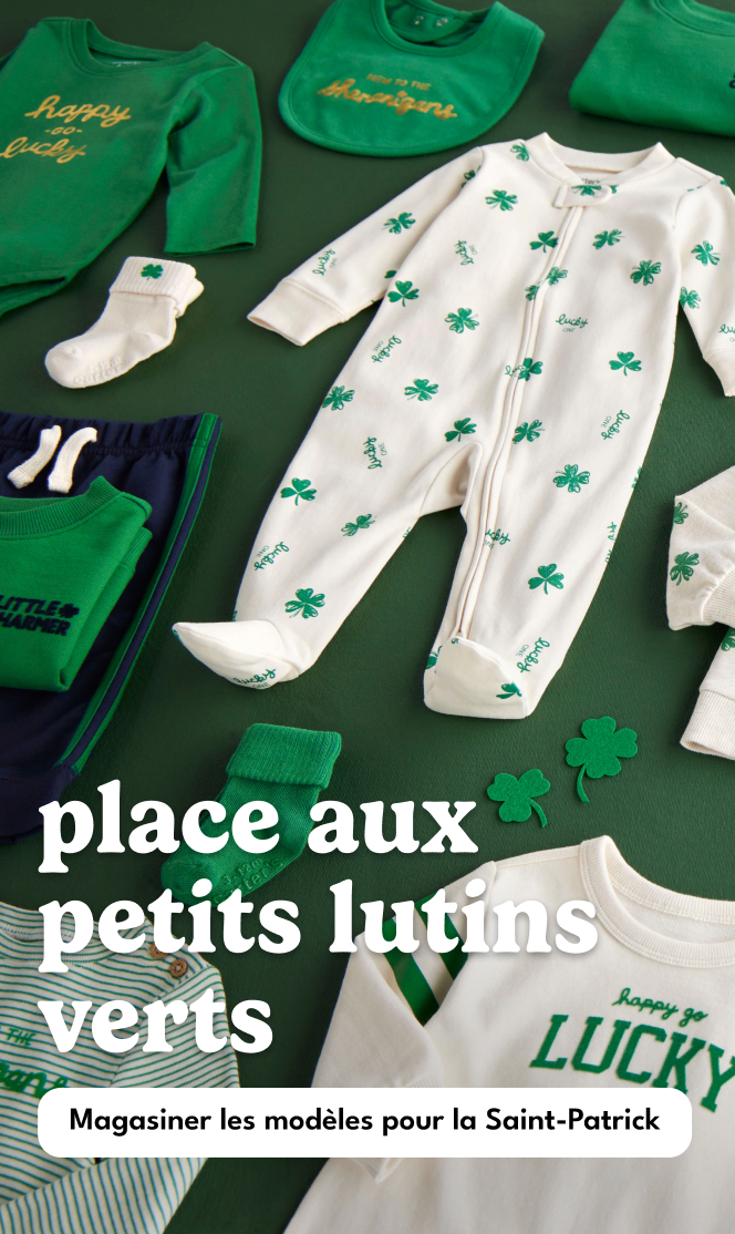 Si vous attendez un nouveau membre de la famille, vous avez probablement commencé à penser à tous les vêtements qu'il portera. Commencez par l'essentiel : cache-couches, pyjamas, chaussettes et chaussons, leggings et pantalons, ensembles de layette, robes ou jupes, chandails et bavoirs comme protection supplémentaire contre les dégâts. L'avantage de nos vêtements pour prématurés, nouveau-nés et bébés est qu'ils sont faciles à enlever et à nettoyer, ce qui simplifie les changements fréquents tout au long de la journée. Pour simplifier le processus d'habillage, vous pouvez également vous procurer des ensembles et des emballages multiples de vêtements pour bébés afin d’agencer rapidement et facilement des tenues dont les couleurs sont déjà coordonnées.